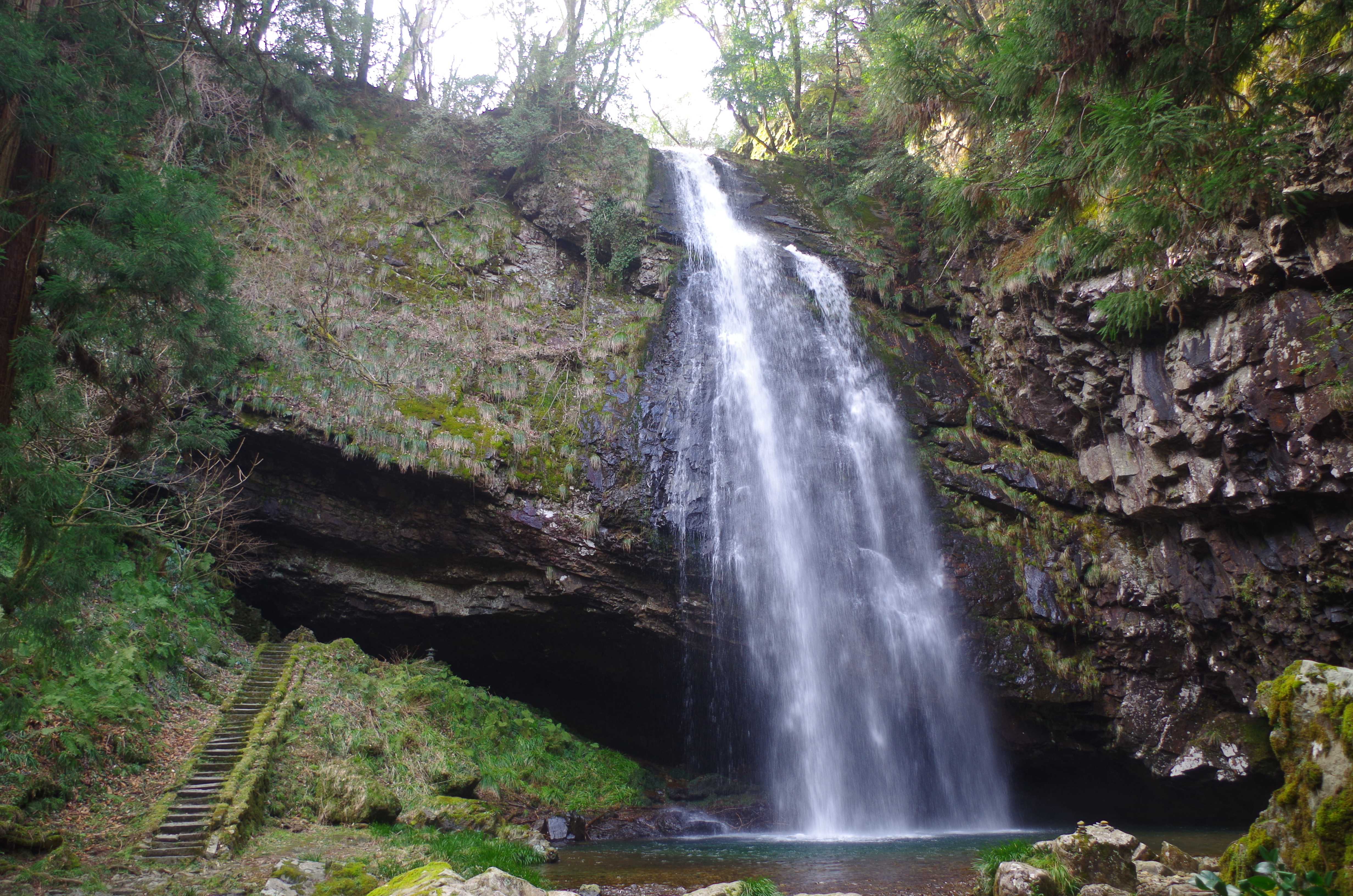しかも、川の中の石を飛び飛びすると、左側の階段から滝の裏に入れます。