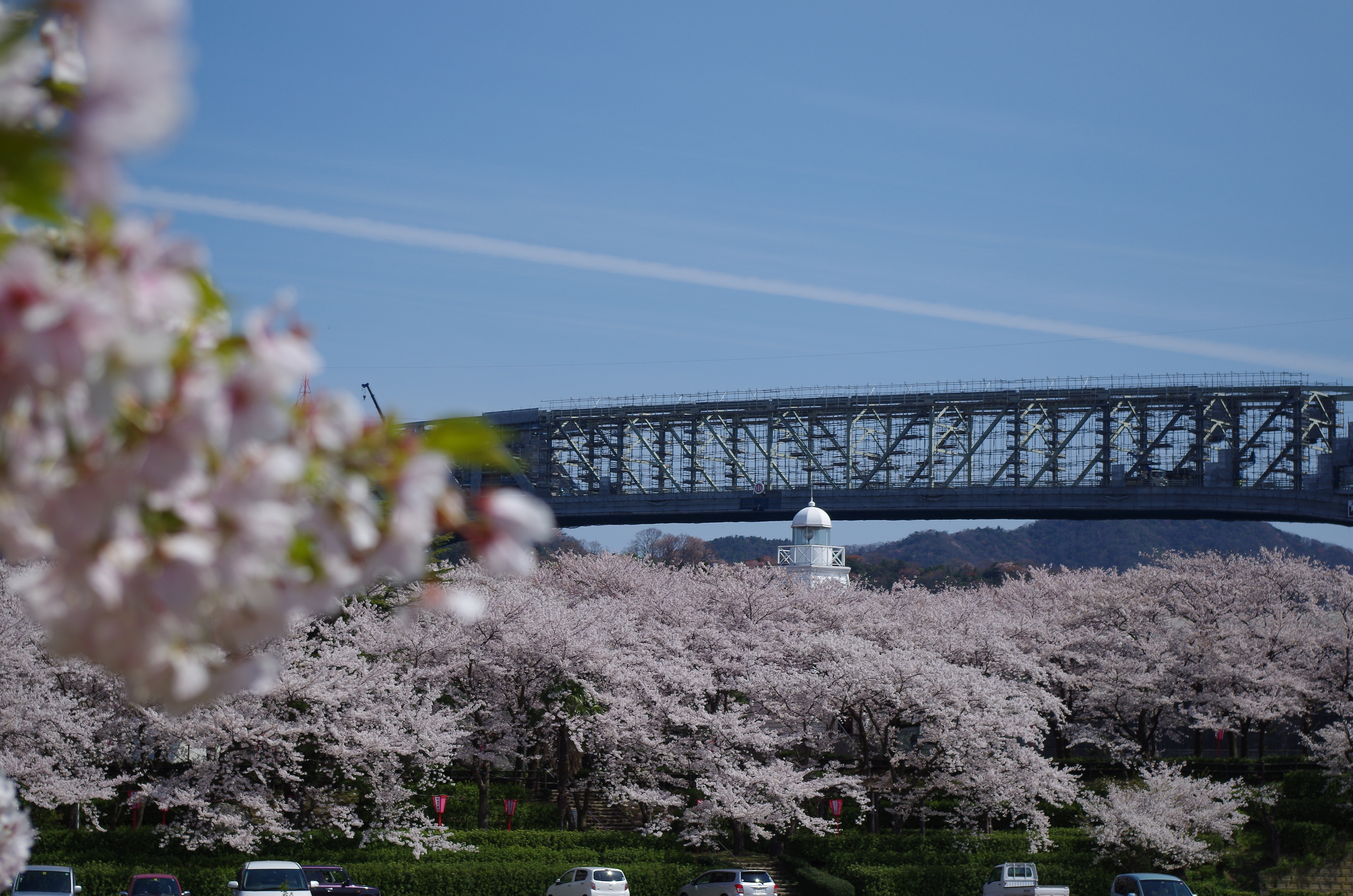 (港町らしく、橋と灯台と桜がいい感じです)