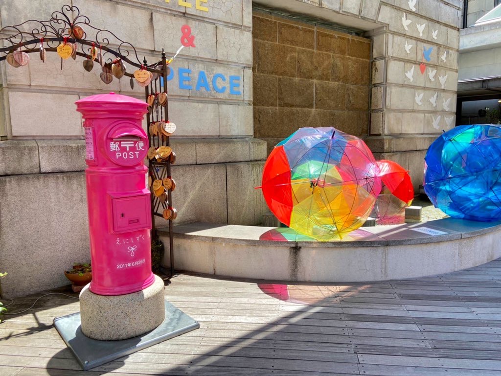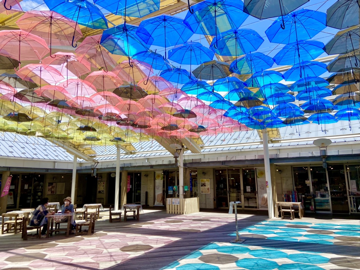 晴天に恵まれ、日差しに反射して綺麗に傘が飾られていました。