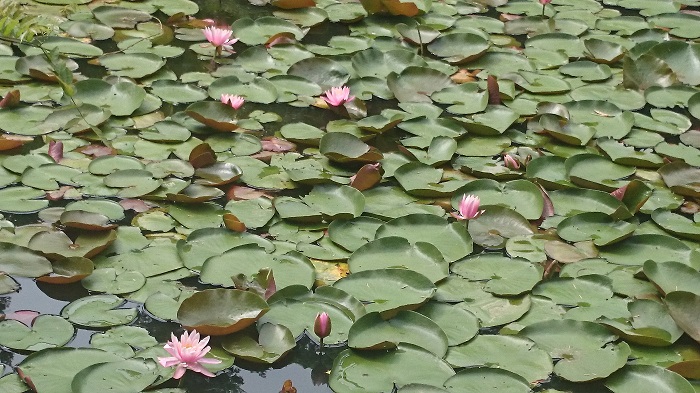 池には蓮の花も