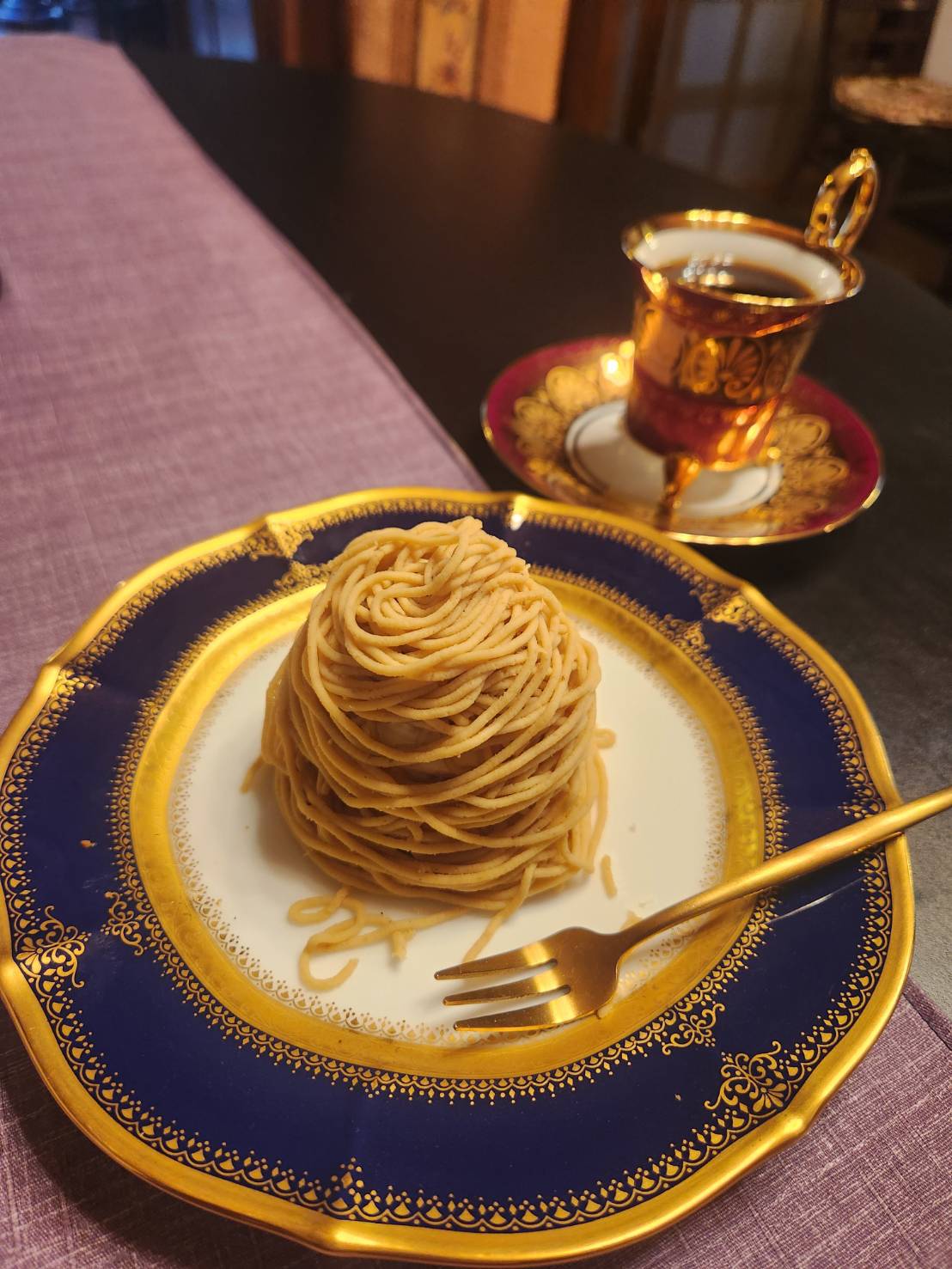 私はグリーンカレーと和栗のモンブランを頂きました。